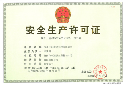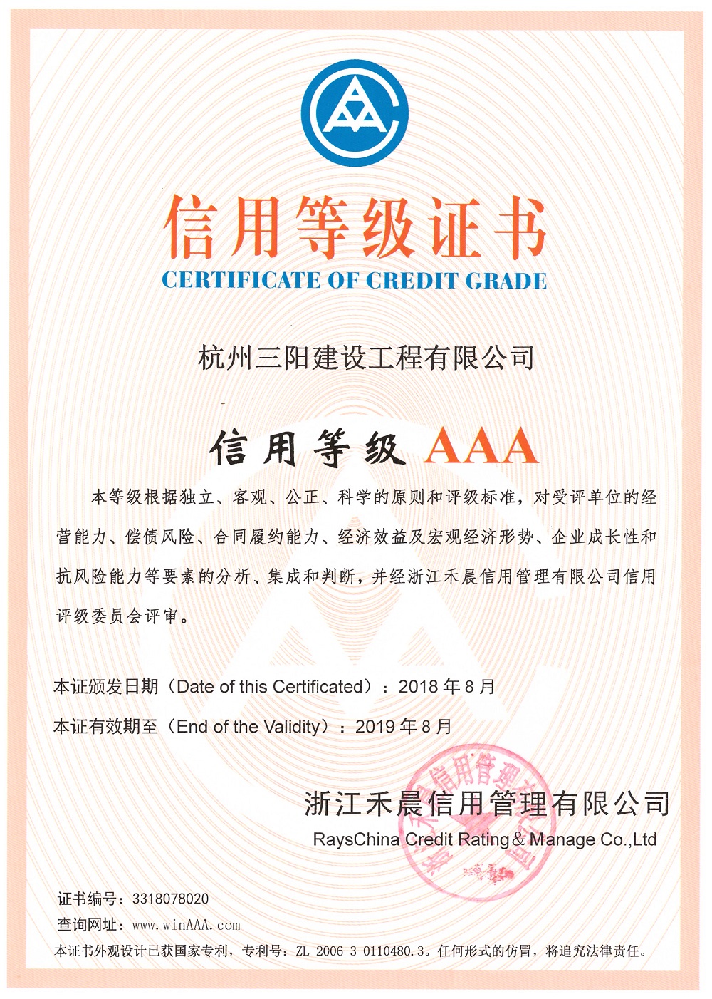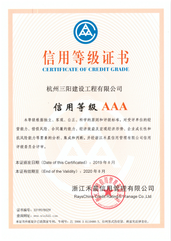 The Company has the grade-A general-contracting qualification of municipal and public works, grade-B design and construction qualification of construction and decoration engineering, general-contracting qualification of construction, decoration and house building construction, professional contracting qualification of urban garden greening and earthwork. The Company has won such honors as “excellent enterprise of credit rating for municipal and public works construction enterprises in Xiaoshan District”, “unit of ‘a(chǎn)biding by the contract and focusing on good faith’ with grade AA credit for industrial and commercial enterprises in Zhejiang Province”, “‘West Lake Cup’ in Hangzhou City” and so on. The Company has been appraised to be a grade AAA enterprise by Hangzhou Municipal People’s Government for many years continuously. In addition, the Company has been appraised to be “a best partner”, “a high-quality client”, “a unit abiding by the contract and focusing on good faith” by several banks (such as Hangzhou United Bank and so on) for several times. The Company has been incorporated into the directory of contractors prepared by the Municipal Government for four years continuously.