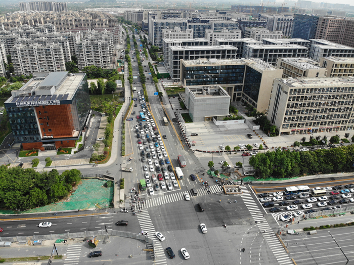 同時,由于橫跨文一西路的車道面積增加,南北向人行橫道線較長,市民一次性不能穿越文一路時,需要在圍護區(qū)附近耐心等待,依照紅綠燈二次過街。