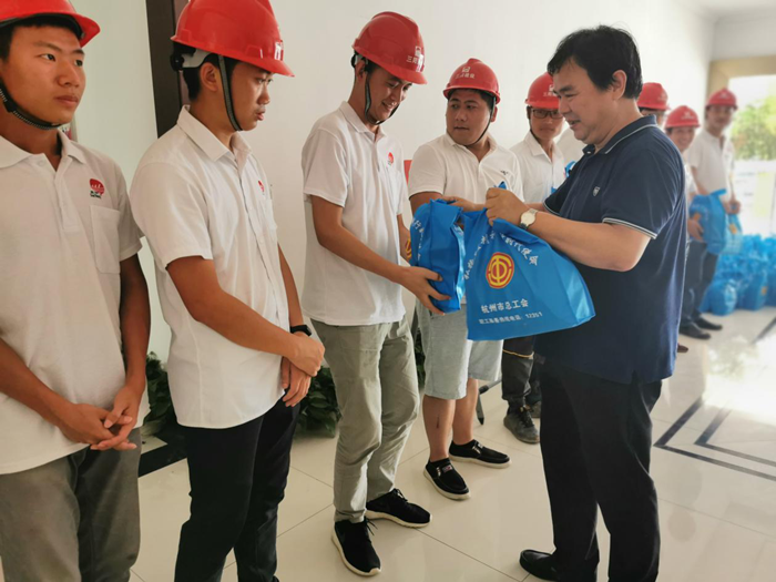 2020年7月30日,杭州市文一路提升改造工程聯(lián)合黨支部書記費(fèi)征云、公司總經(jīng)理陳涌彪為奮戰(zhàn)在高溫一線的工程建設(shè)者們送來(lái)了防暑降溫物品,親切慰問(wèn)了在似火的驕陽(yáng)下、酷熱的環(huán)境中仍堅(jiān)守工作崗位的施工人員,叮囑他們科學(xué)合理安排工作任務(wù)和時(shí)間,注意勞逸結(jié)合,提高自我防護(hù)能力,切實(shí)做好高溫防護(hù)工作。