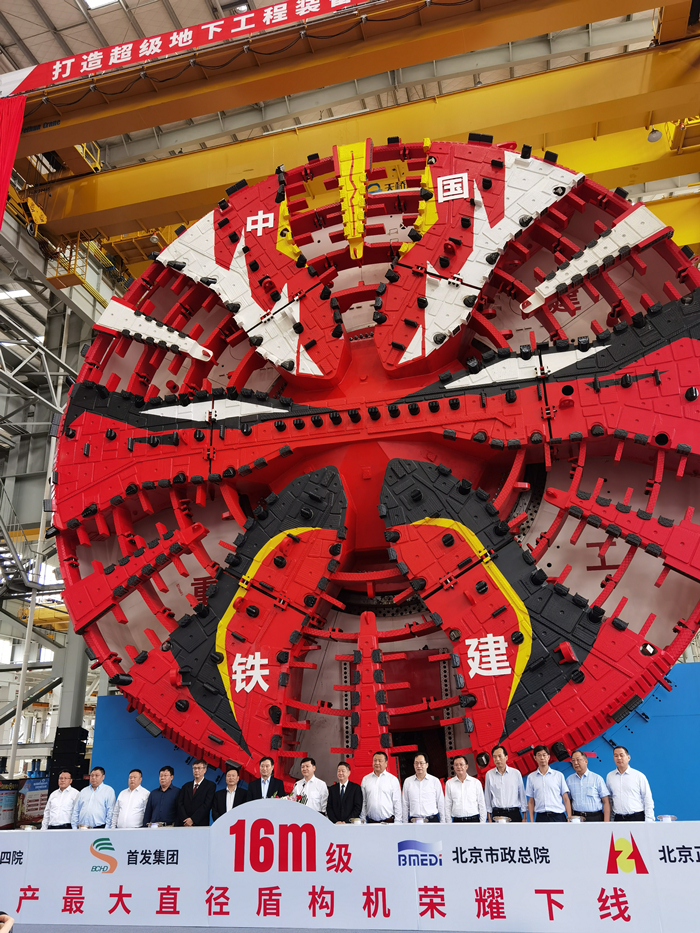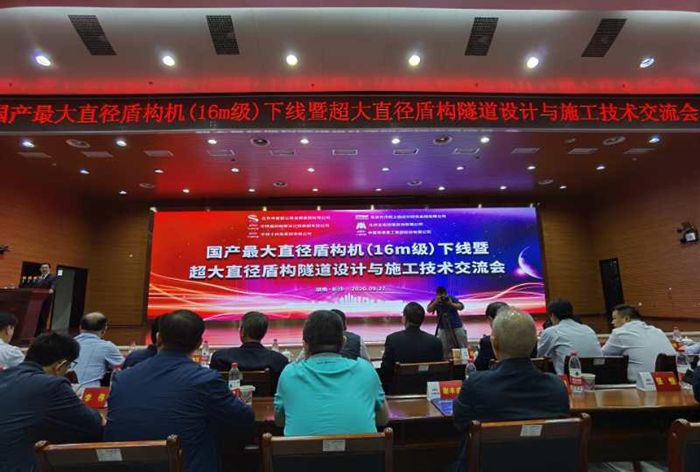 上午8時許,國產最大直徑盾構機(16m級)下線儀式正式開始,受邀出席本次活動的專家、領導有中國工程院陳湘生院士、湖南省科技廳魯先華副廳長、湖南省工信廳黃寶林副廳長及北京城市副中心工程建設管理辦公室、北京市首發高速公路建設管理有限公司、中國工程機械工業協會、青島地鐵集團有限公司、中國鐵建股份有限公司、中國鐵建重工集團有限公司等131位業內精英。人民日報、新華社、中央人民廣播電臺、中央電視臺、經濟日報、科技日報、中新社、湖南日報、湖南衛視等數十家中央主流媒體和地方媒體在現場集中采訪報道。