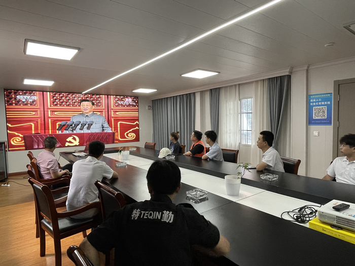 為了做好建黨100周年慶祝活動(dòng)盛況的收看工作,各項(xiàng)目部提前一天就調(diào)試好視頻設(shè)備,確保人人能準(zhǔn)時(shí)收看直播盛況。