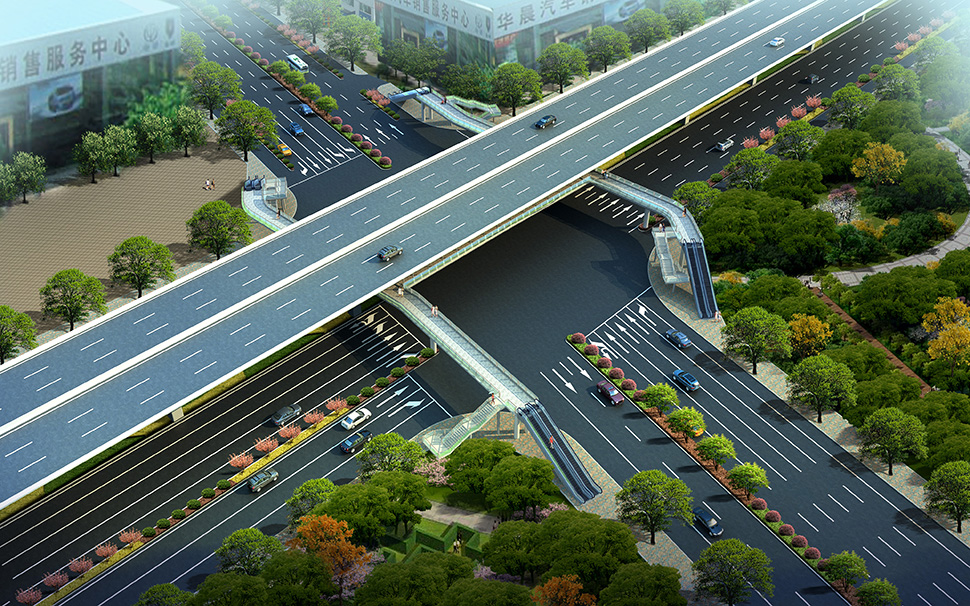 除了主體橋面部位以外,工程還包括位于杭行路西的一對平行匝道、位于東吳路東側的落地匝道、莫干山路的一座立交,以及杭行路與城市學院北門的兩座人行天橋。而02標段涵蓋了其中的多個匝道與人行天橋節點。