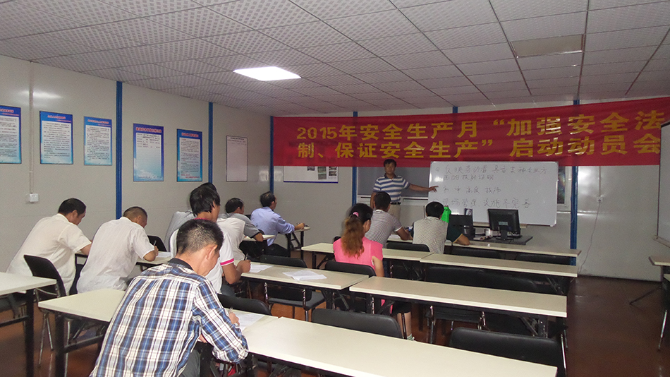 2015年6月2日,石祥路02標開啟2015年度安全生產月動員大會。今年安全生產月主題是“加強安全法制、保證安全生產”。安全員在各班組安全生產月動員大會上,重點講到安全生產必須依法行事、將安全生產納入到法治范圍內。在各班組內部開展排查安全隱患,制定防范措施,消除安全隱患的行動,不留死角、全面展開。火災隱患主要在民工宿舍內的大功率電器燒水做飯、易燃場所吸煙、使用明火。施工現場安全隱患是違章作業、違章指揮、違反勞動紀律、未正確佩戴勞動防護用品,具體預防高空墜落、物體打擊、坍塌、機械傷害、電器傷害、交通事故、安全防火、衛生食品中毒。教育職工發現安全隱患及時上報及時排除,將安全隱患消滅在萌芽之中。